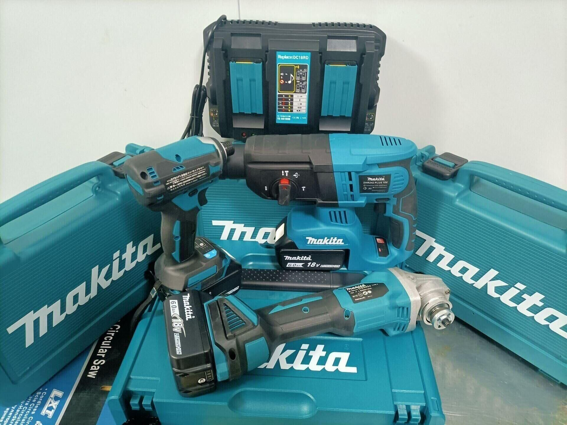 15分鐘前makita牧田款18V無刷牧田三機組!限時搶購中,每人限購一組 - 牧田三機組鎚鑽+砂輪機+起子機(三主機+原廠18V6.0電池*6顆+充電器*6)一入組NT$8580