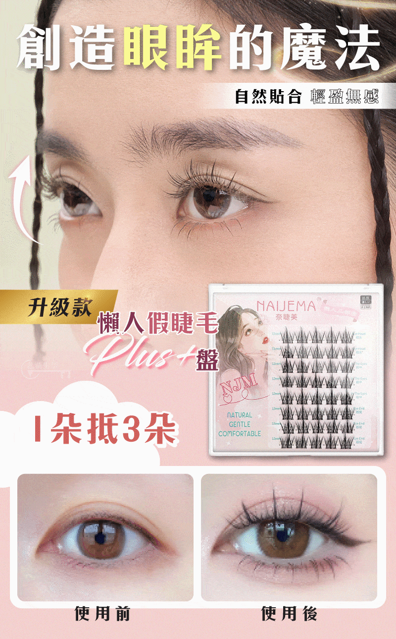 15分鐘前【限時買一送一】日本爆款吸睛NJM懶人睫毛,一秒粘貼 輕盈超細梗 自然不做作~轉為亞洲人眼型設計,上班 / 上學 / 約會 快速上妝秒出門 - 【99%的人選擇 買三送三】NJM懶人假睫毛六入組(一秒粘貼 輕盈超細梗 自然不做作)-NT$ 1380