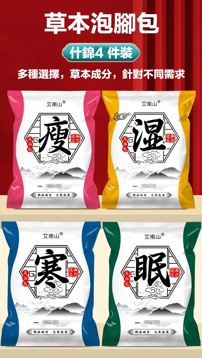 4分鐘前艾草足浴包 草本配方,真材實料,四季皆宜,驅寒排濕,促進血液循環,改善內分泌,提高睡眠質量, - 全家套餐【四款配方任選9入組*270包 均價5】-NT$1398