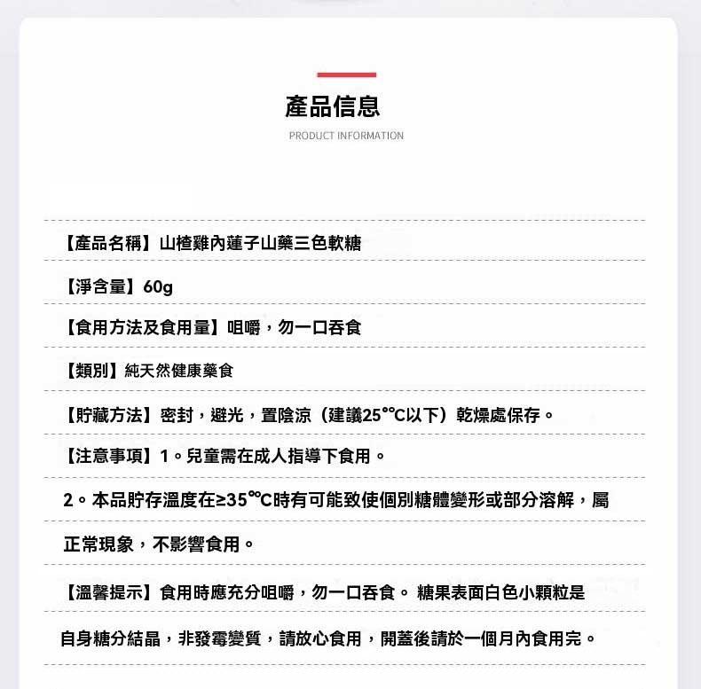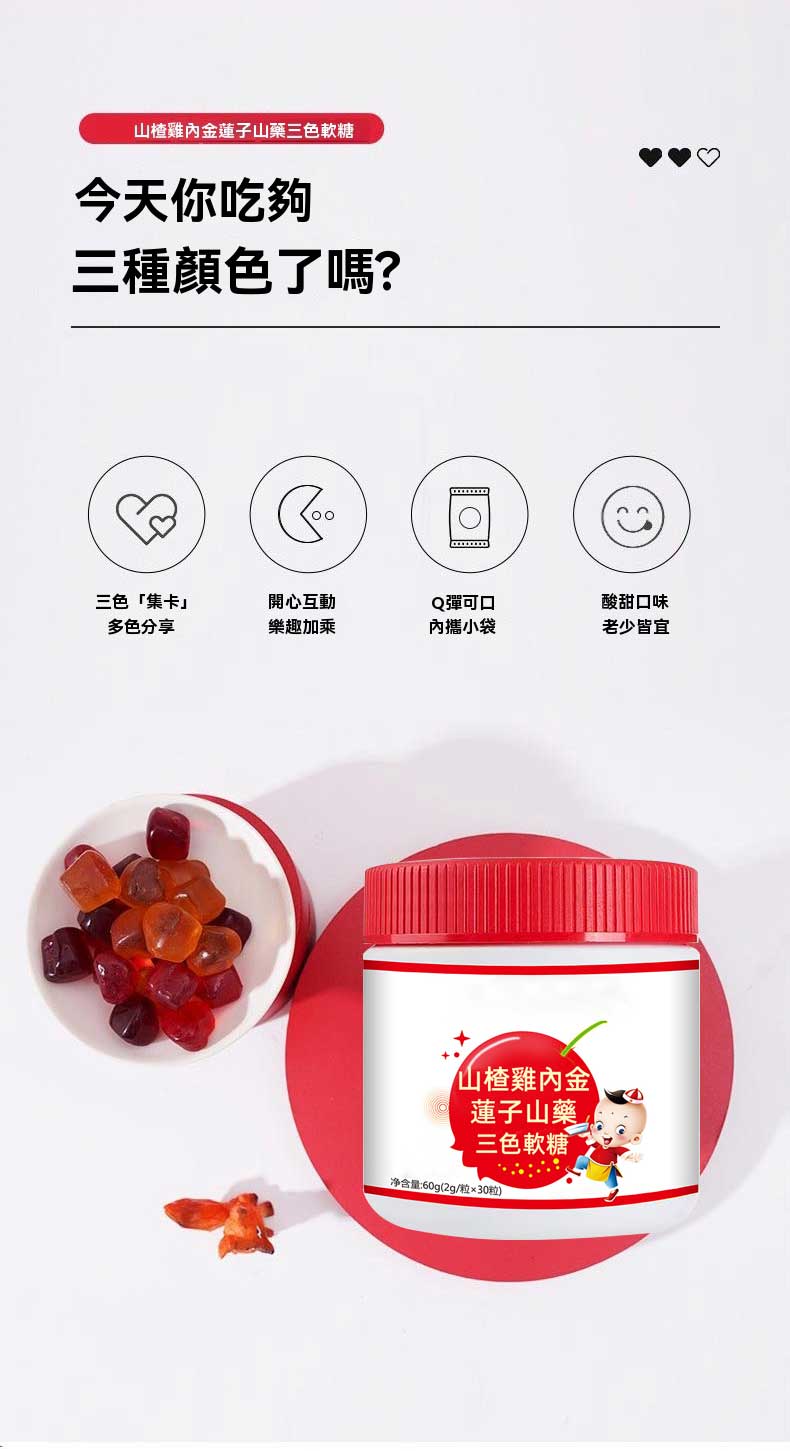 7分鐘前【山楂雞內金軟糖】開胃、健脾、消食,無蔗糖,純天然藥食同源,增進孩子胃口,增強消化,促進營養吸收 - 【開胃健脾 促進脾胃功能】買三送四 7入組 NT$1398