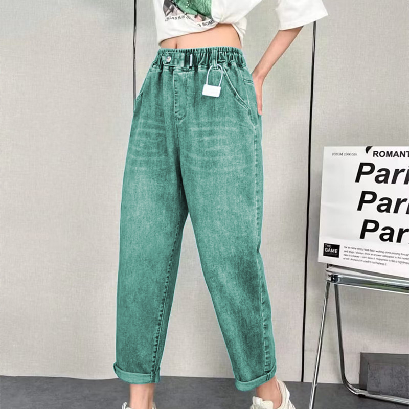 7分鐘前牛仔褲男女款高腰大碼鬆緊腰哈倫褲 - 【單件嘗鮮】僅需 NT$ 960
