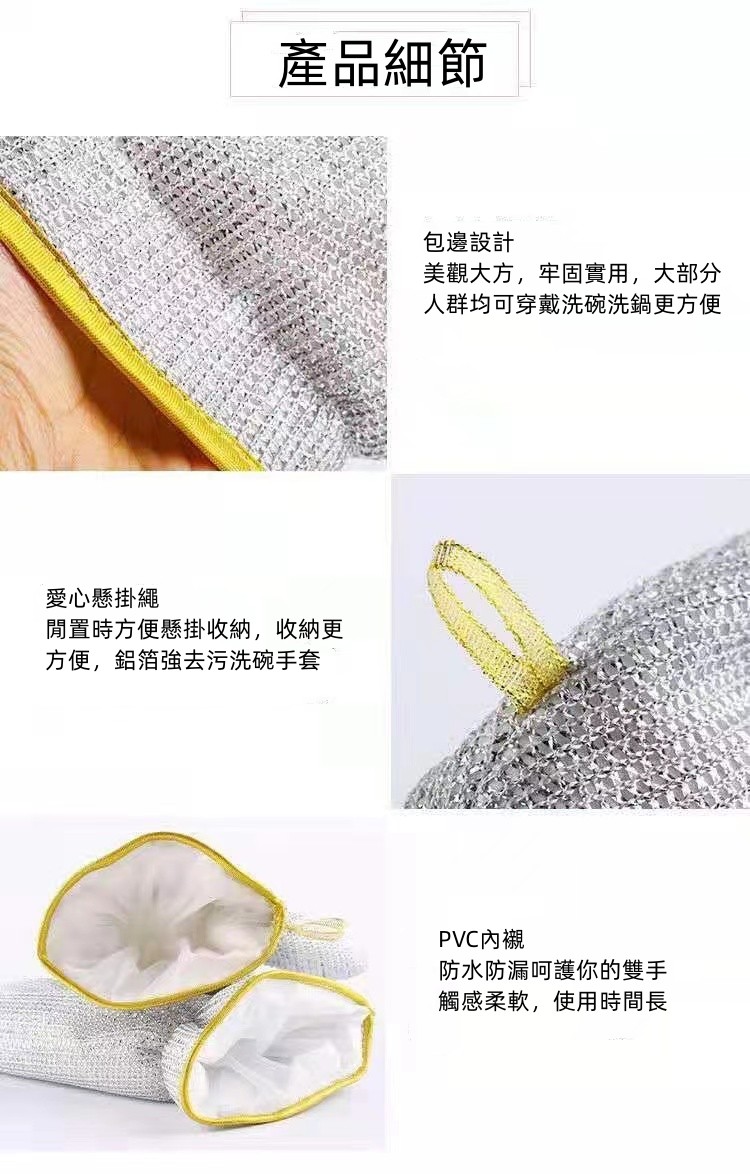 20分鐘前鋼絲洗碗手套,一年四季都要護手,全新升級pvc防水內襯,耐熱性強,阻擋酸堿,抹布與清潔球的結合體,自帶掛繩方便收納 - 好友分享【限時秒殺】10雙-NT$1290 均價129入