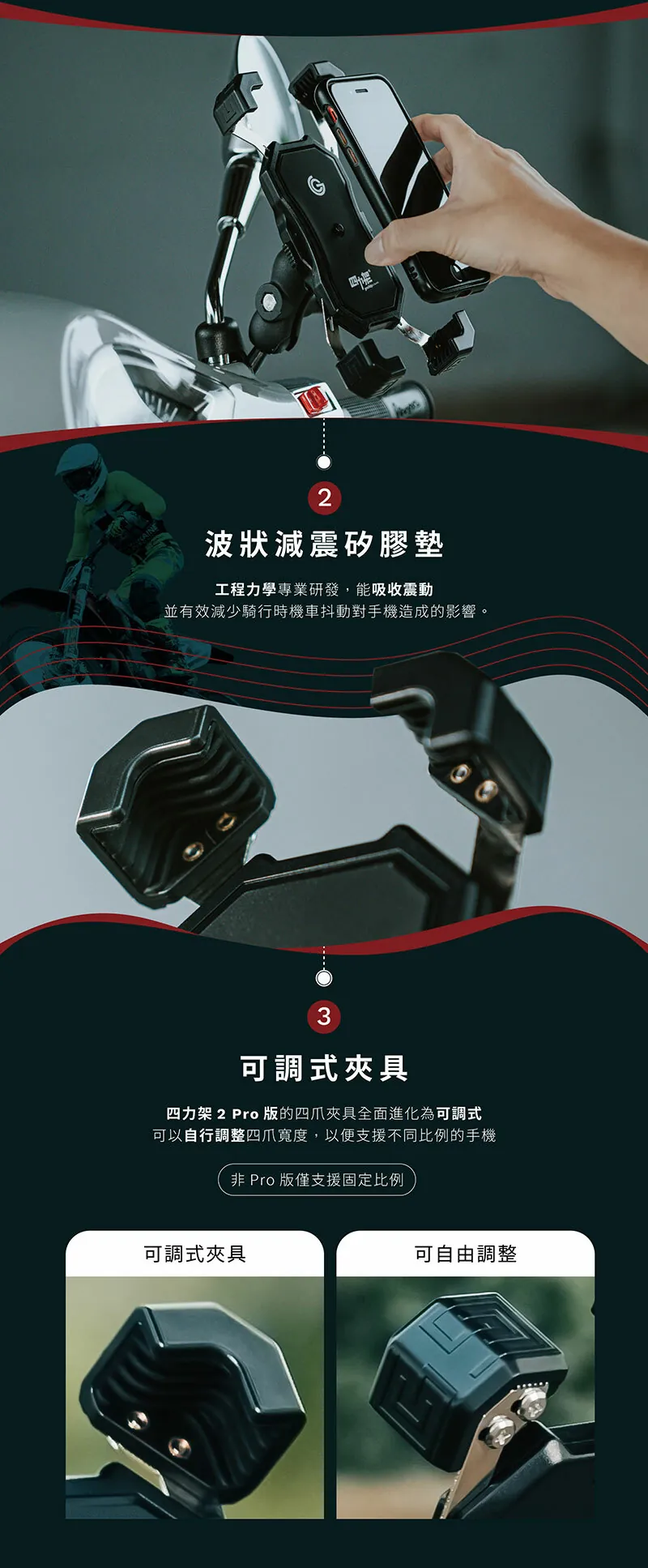 4分鐘前GC 四力架2 / 2s 單手操作 快人一步 最新四力架2 Pro 自動夾緊 USB充電 無線充電兩用機車手機架 外送必備 接單神器 - 媽祖款-紅色 2s Pro(快充版)一入組NT$1,180