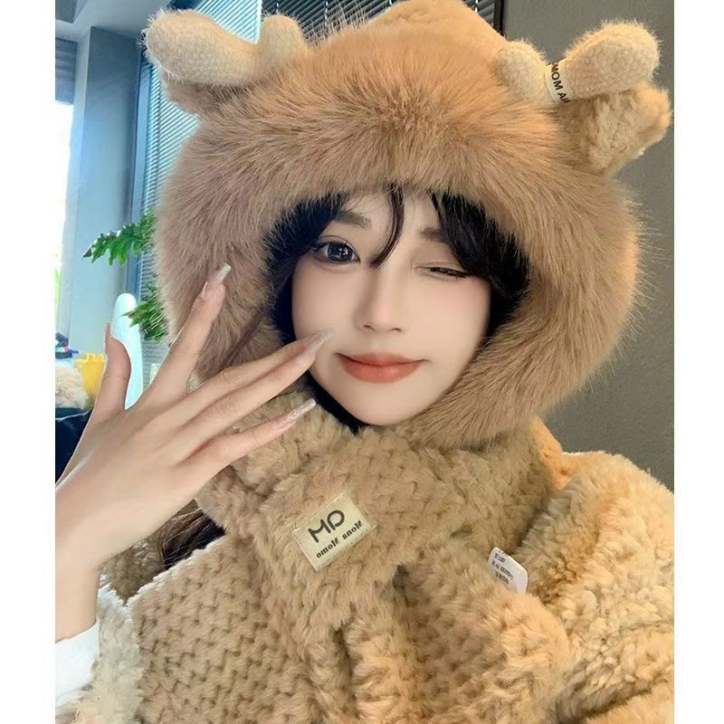 25分鐘前【熱銷免運】新款可愛帽子圍巾一體女冬季連帽圍脖加厚保暖毛絨三件套騎車 毛線帽 針織帽 毛帽 小熊造型 可愛毛帽 - 【超夯活動】閨蜜兩入組$1099