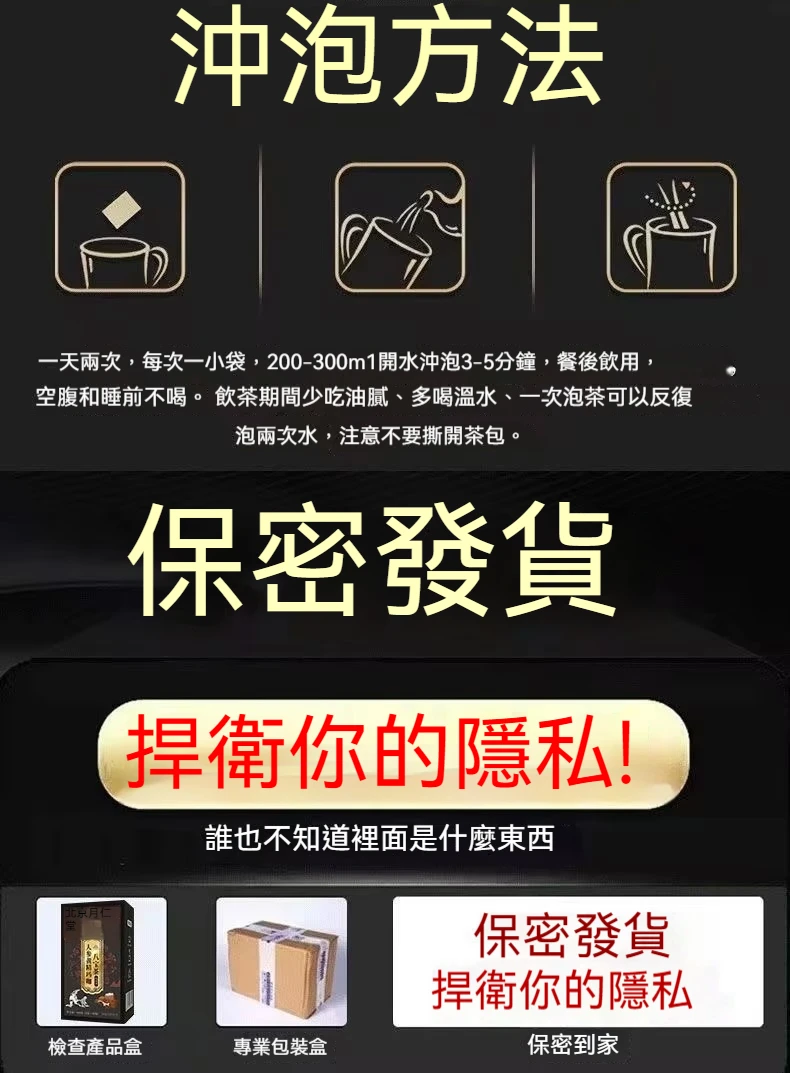 25分鐘前【中老男人重振雄風】八寶養生茶,每天來上一杯,氣血雙補,渾身有勁不喊累,滋補腎氣,助您煥發活力!獨特配方,幫您重回到十八岁,【保密出貨,無效退全款】 - 【精血雙補】低至155/組 (9盒270包)NT$1399