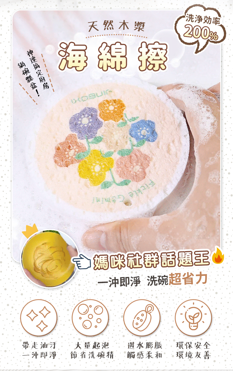 4分鐘前木漿海綿擦/碗洗得更乾淨又健康✨用過都說回不去 - 【破盤殺價:20入組】花朵木漿海綿擦NT$999