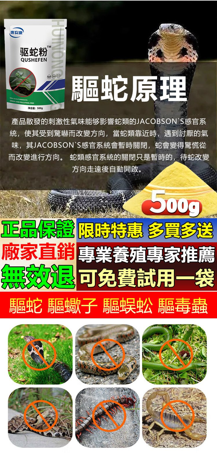 4分鐘前【强效驅蛇粉】千米内無蛇,不毒家禽, 保護家禽,驅蛇/驅蠍子/驅蜈蚣/驅毒蟲,一撒驅蛇蟲,時效可達90天,不怕雨淋 - 【破盤嗨購】買二送三 5入組 NT$-1498