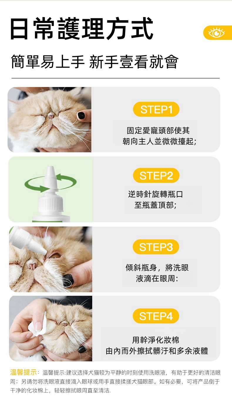 2分鐘前【寵物洗眼液】眼部清潔貓咪狗狗去淚痕消除粉神器,去眼垢去淚痕 防止眼部疾病 - 【可用四個月】4入組-NT$1350