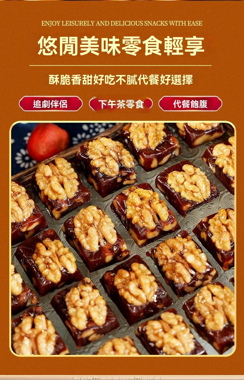 7分鐘前【爆款熱賣】山楂烤核桃糕真材實料健康營學生養代餐早餐好吃飽腹下午茶 - 【500g嘗鮮價 限時下殺】NT$998