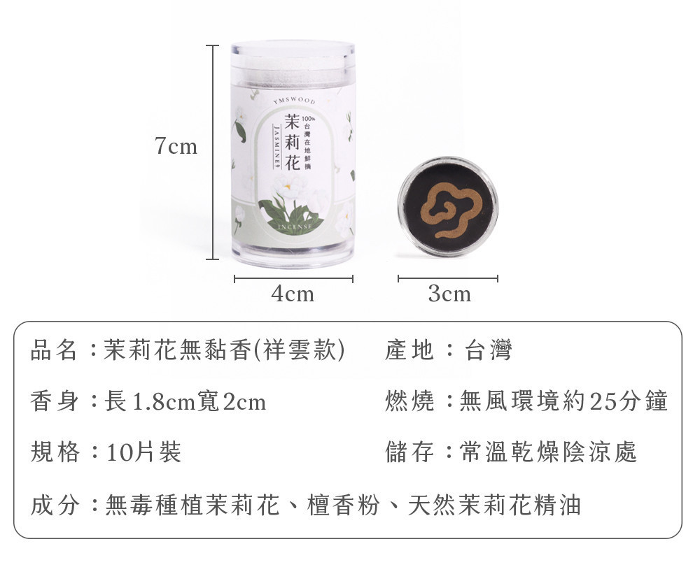 12分鐘前原木香 茉莉花無黏香 10g/ 20g 無粘香 祥雲香 食用級 無毒 花壇茉莉花 窨茶 薰香 擴香 開運 招財 濃縮10倍香氣 臥香 線香 無黏粉 獨家技術 - 茉莉花無黏香 祥雲款(10片裝)7罐