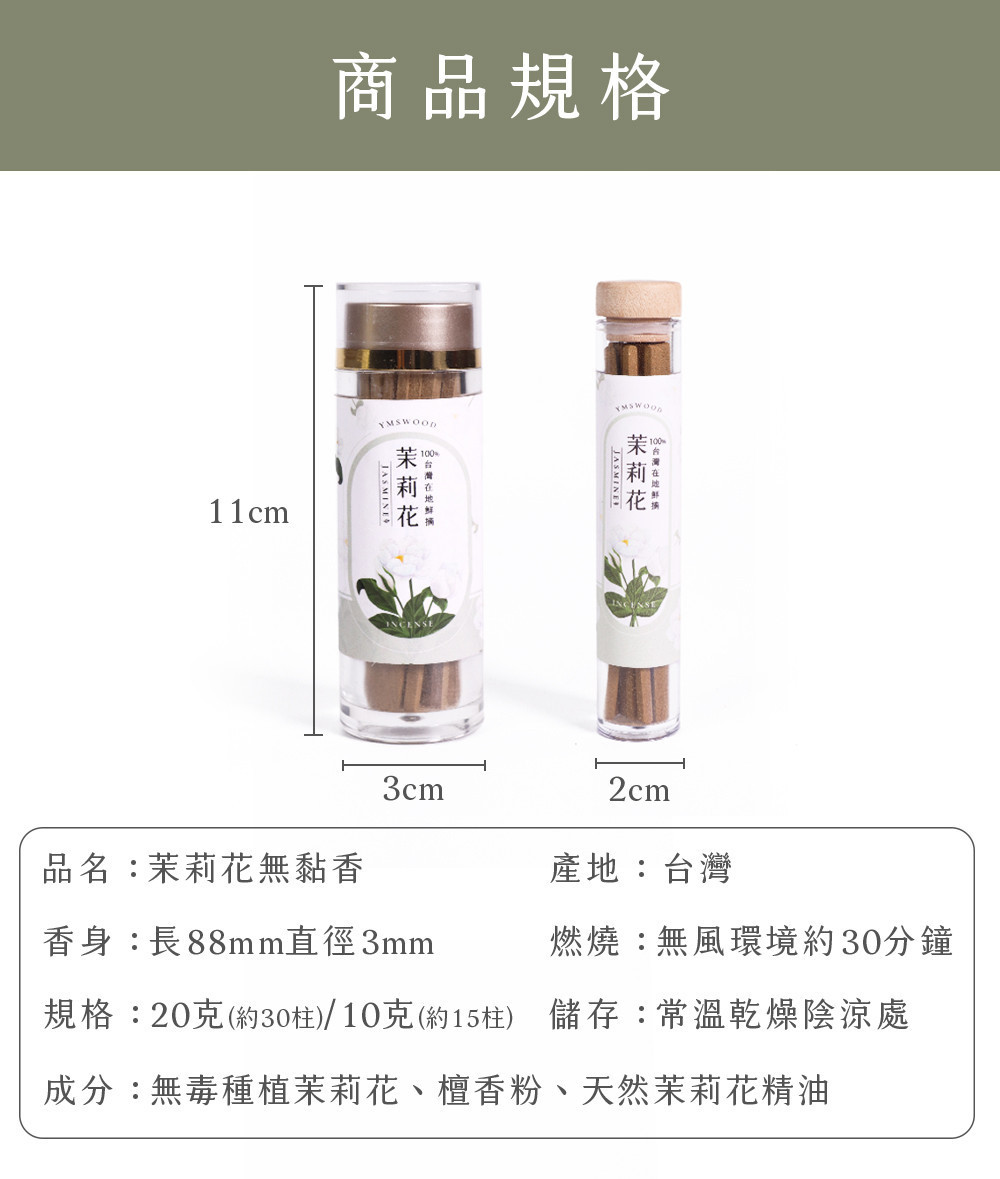 11分鐘前原木香 茉莉花無黏香 10g/ 20g 無粘香 祥雲香 食用級 無毒 花壇茉莉花 窨茶 薰香 擴香 開運 招財 濃縮10倍香氣 臥香 線香 無黏粉 獨家技術 - 茉莉花無黏香 祥雲款(10片裝)7罐