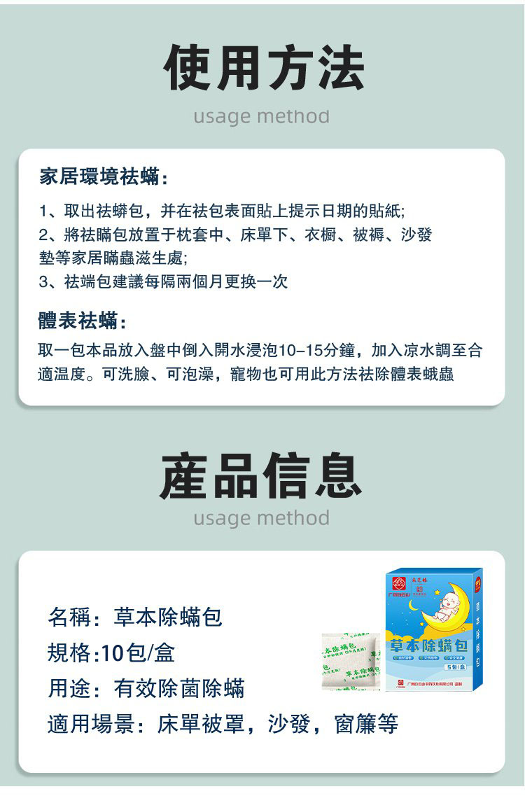 11分鐘前草本除蟎包「春夏季節」蟎蟲細菌容易滋生繁殖快,有了這款除草本除蟎包,在也不用擔心了!! - 「買三送七」十入組NT$1399(均價低至$139/盒)共100小包