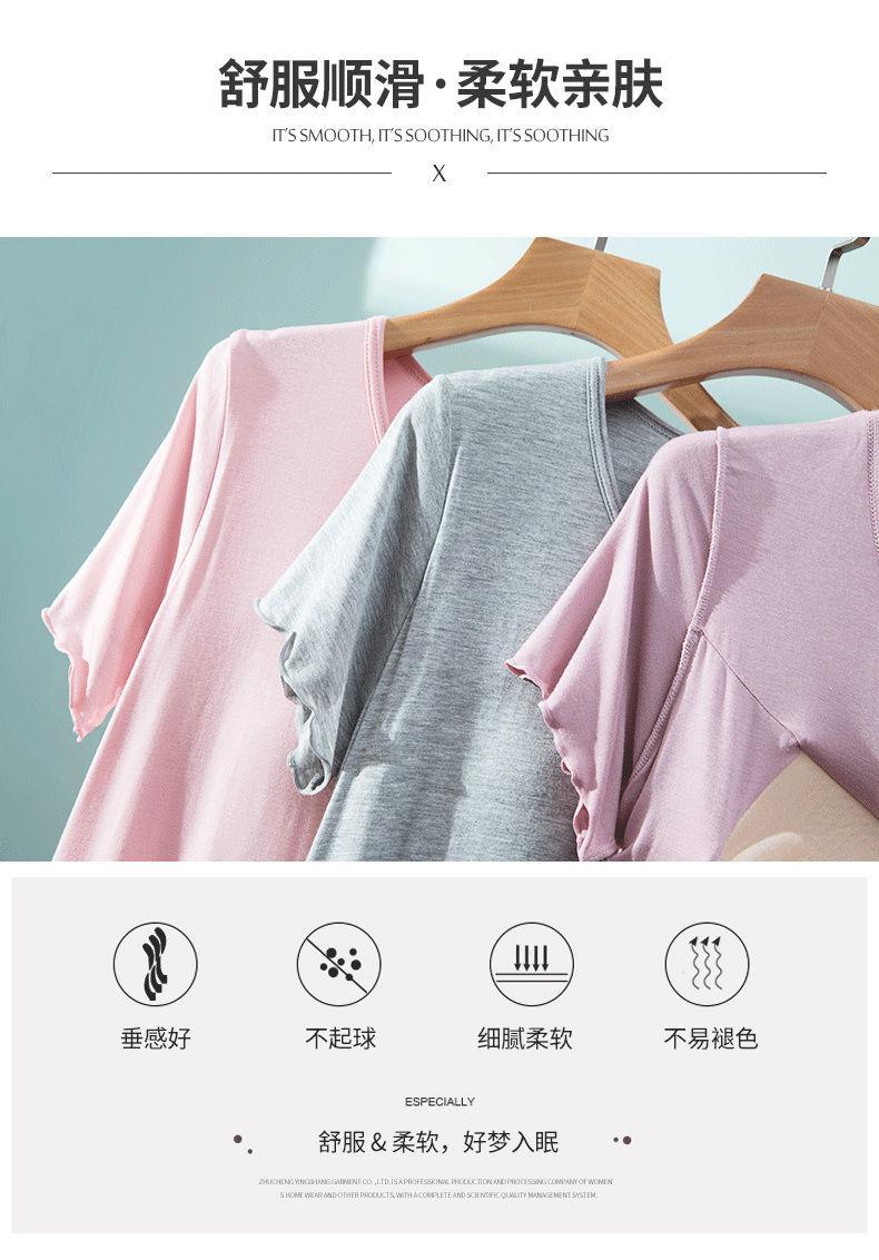 2分鐘前 莫代爾帶胸墊睡裙 夏季女罩杯一體睡衣連衣裙 寬松木耳邊家居服 - 【98%選擇】2入組-NT$1320