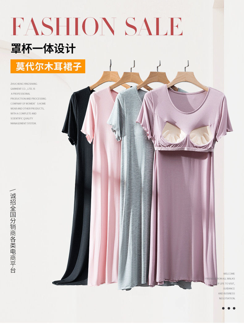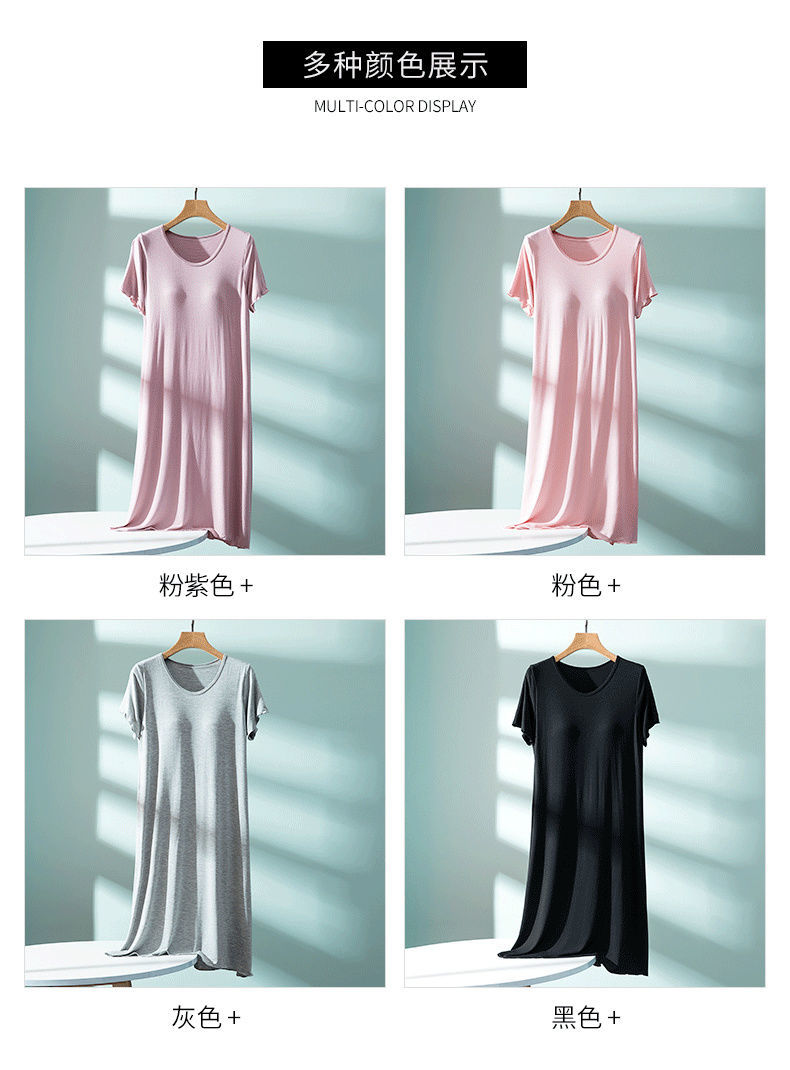 7分鐘前 莫代爾帶胸墊睡裙 夏季女罩杯一體睡衣連衣裙 寬松木耳邊家居服 - 【店家推薦】3入組-NT$1650