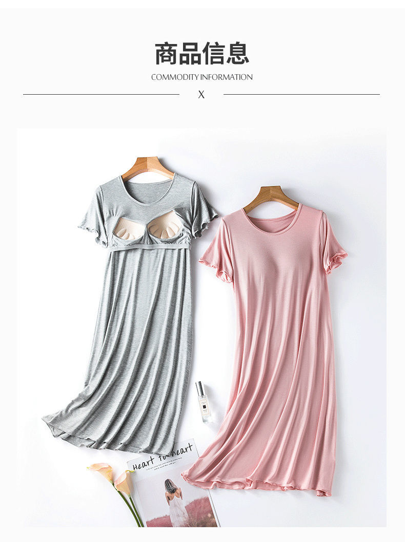 2分鐘前 莫代爾帶胸墊睡裙 夏季女罩杯一體睡衣連衣裙 寬松木耳邊家居服 - 【嘗鮮】1入組-NT$1060