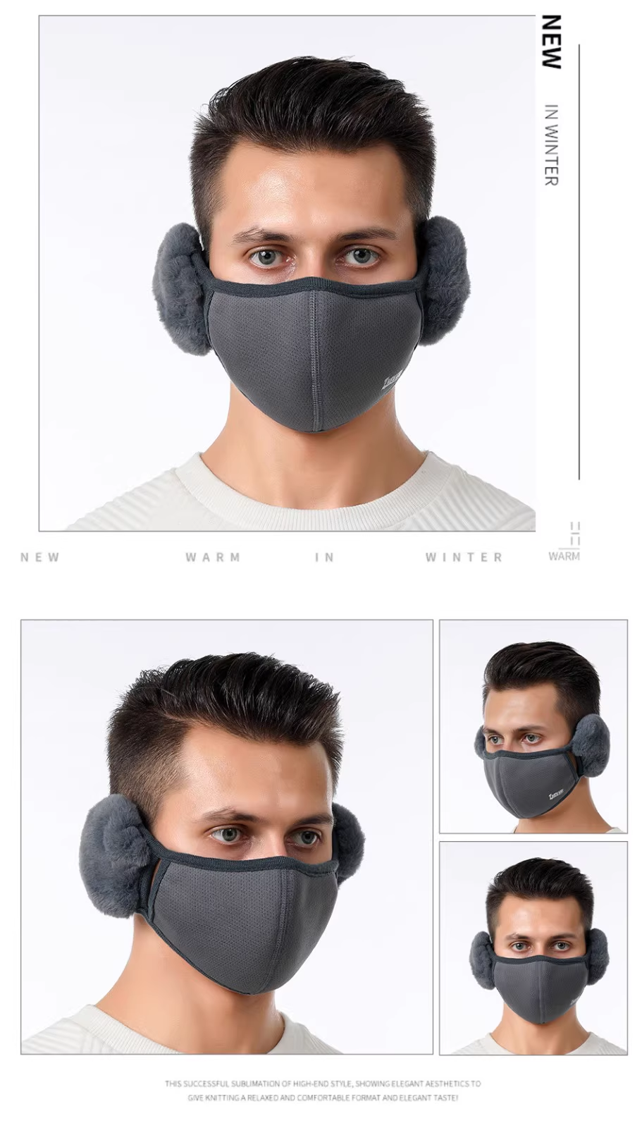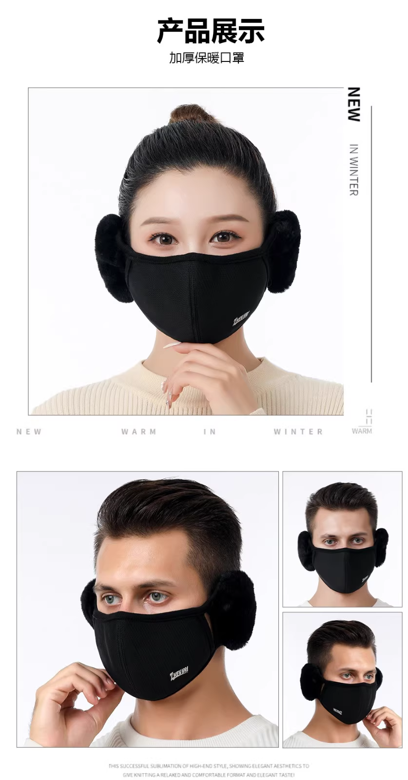 5分鐘前日本進口!台灣本地發貨!【男女同款】秋冬季高颜值纯棉加绒透气防寒防风护耳二合一面罩 - 體驗裝【買一送二】3入組NT$940(均價313/組)